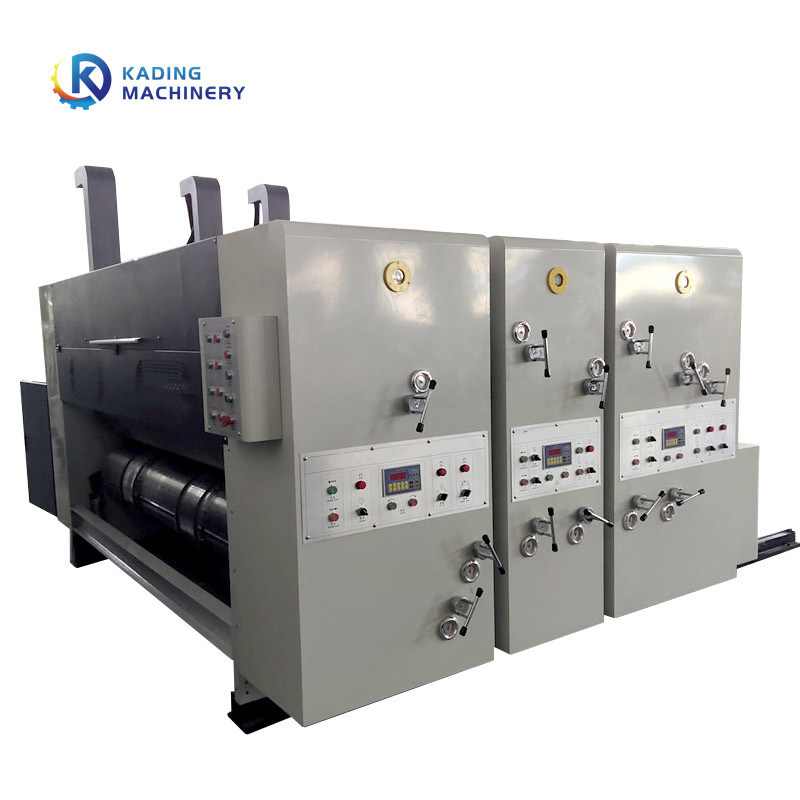 कार्डबोर्ड प्रिंटिंग डाई कटिंग स्लॉटिंग मशीन एक कम्पोजिट उत्पादन उपकरण है जो लहराती कार्डबोर्ड रिक्त कटौती, ग्रूविंग, स्लिटिंग, स्कोरिंग और प्रिंटिंग की पांच प्रक्रियाओं को एकीकृत करता है.इसका उपयोग मुख्य रूप से तरंगीन बक्से पर रंगों को प्रिंट करने के लिए किया जाता है, विशेष रूप से ओवरप्रिंटिंग।